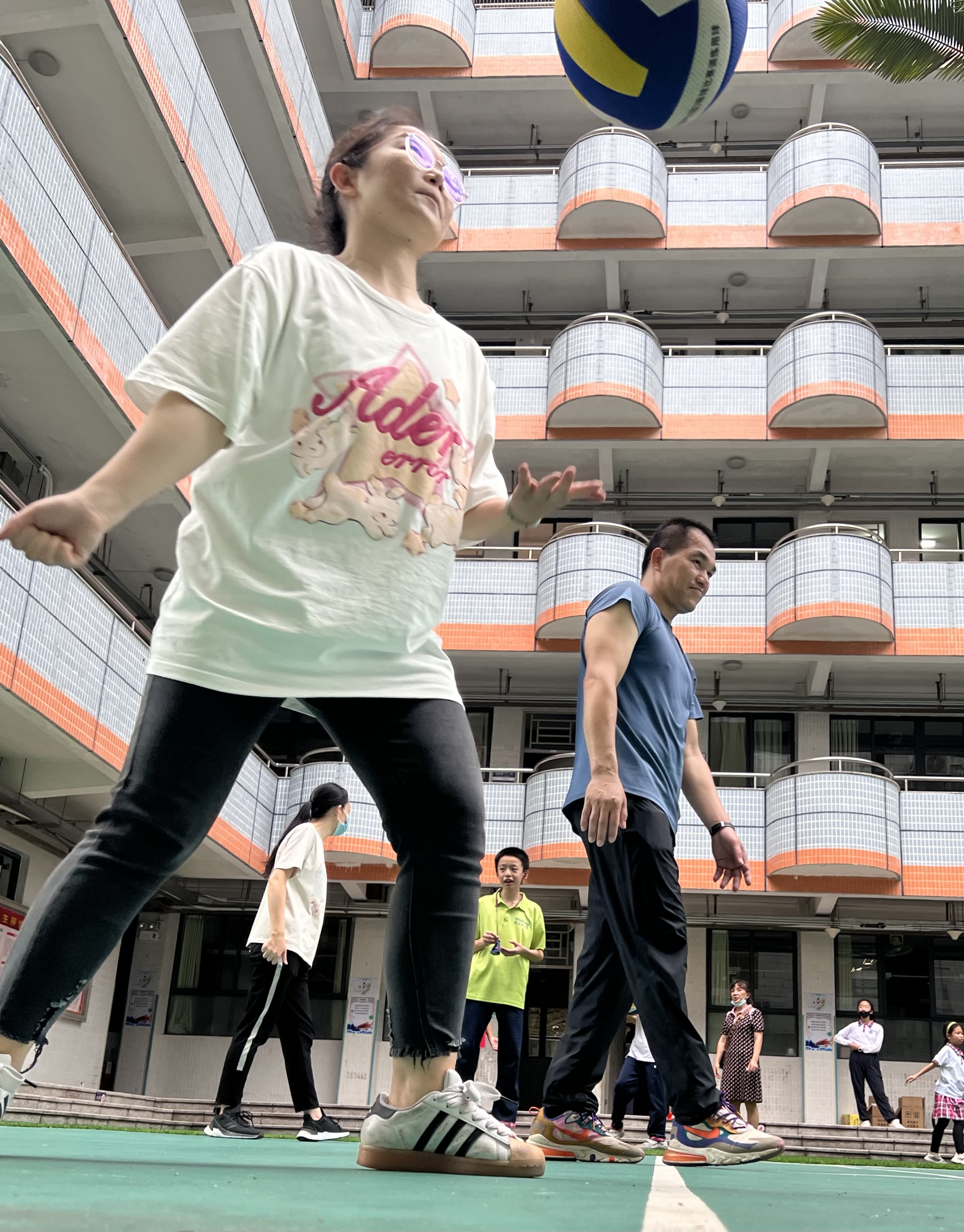 本次比赛以年级组为单位,共有10支队伍,实行积分赛制,设定点发球、排球沙狐球等两个比赛项目,分别以两个项目的总分进行排名。据悉,有100多位教职工参加了本次活动,身同感受气排球带来的乐趣。