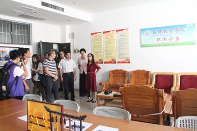 谢岩梅一行莅临我院“职工小家”,参观我院开展的工会活动图片展,对我院工会工作取得的成效赞不绝口,杨敏生介绍了学院教职工的基本情况、主要特点和学院“以师生为中心” 的群团工作理念,曾国华简要介绍“职工小家”建设及开展活动的情况,学院以“职工小家”为载体,定期组织各种联谊和文体活动,包括由曾赴孔子学院任教的苏春教师教外教书法、组织下围棋、集体包饺子、教工交流谈心等活动,“职工小家”成为教职工喜爱的温馨小家。