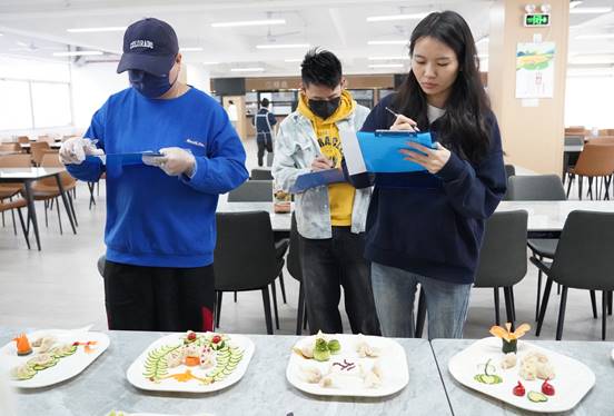 经过一番激烈角逐,每个年级组完成了200个饺子的制作,比赛进入紧张的第二环节。每组选手挑选五颗“种子饺子”,煮熟后送往就餐点,由三位专业评委进行综合评分。评委们从外观、口感、创意及团队合作等多方面细致品评,力求公正。