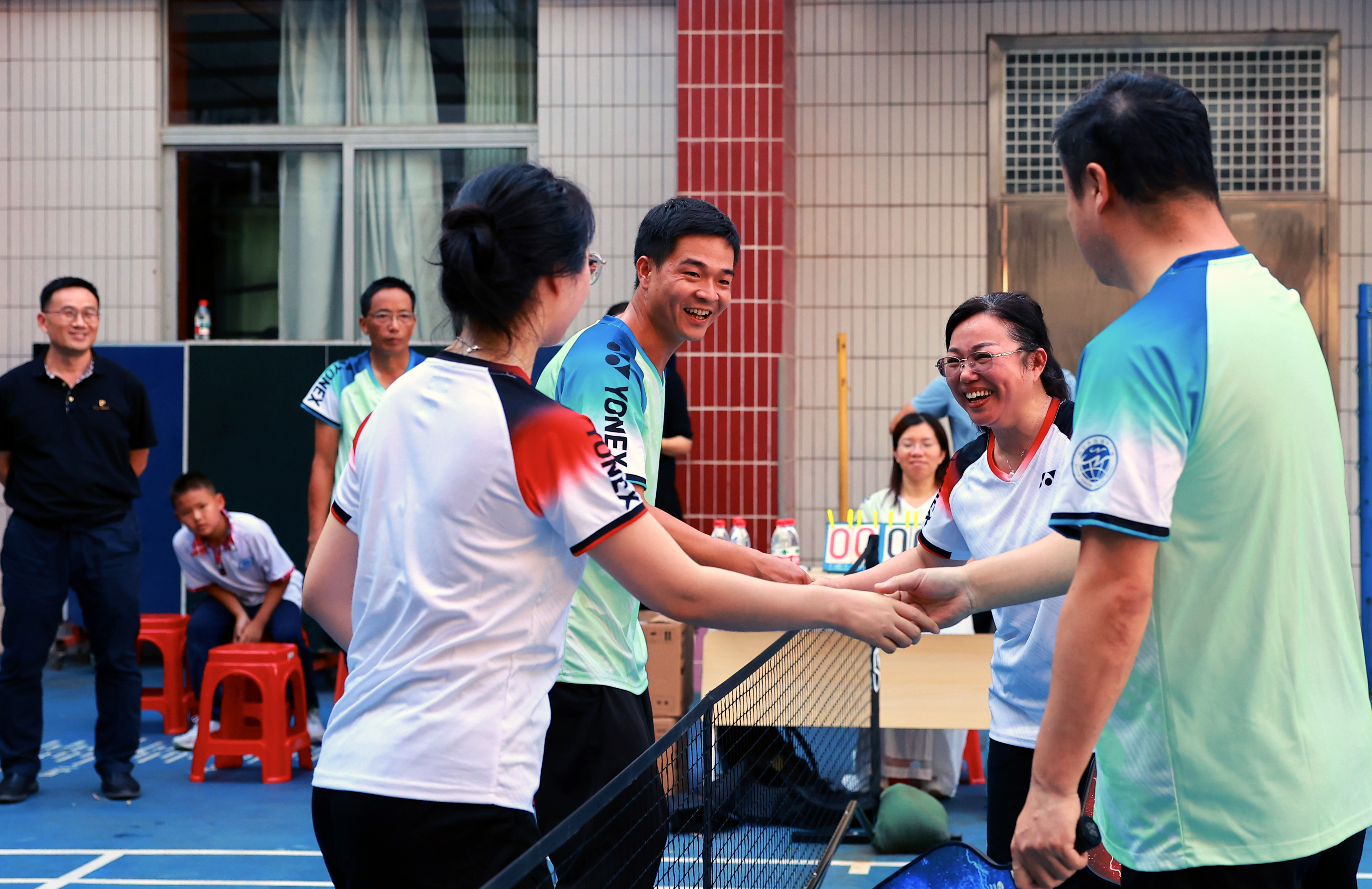 战鼓擂响,精彩纷呈。6月10日下午,在附属中小学羽毛球场特设之匹克球场方寸之地,中学、小学教职工精兵强将为荣誉而“匹”搏,展开一场三局两胜的激烈角逐。