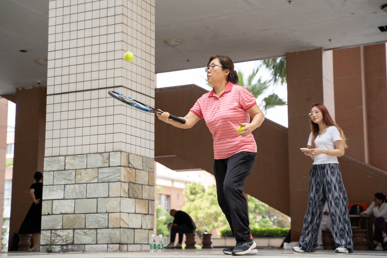 本次活动内容丰富、形式多样,既设置比赛项目正反拍面颠网球,又安排自娱项目转呼啦圈、踢毽子、个人跳绳以及登白云山等。教职工们踊跃参与,积极锻炼。有的灵活翻动网球拍,全神贯注紧盯网球,力争获得比赛优异成绩,展现教职工超越自我的精神面貌;有的前踢、横踢、反脚踢毽球,各展高超技艺,给大家带来一场精彩的踢毽球表演。还有的转呼啦圈、跳花式跳绳,教职工个个精神抖擞、神采奕奕,不仅缓解工作压力、放松身心,又收获运动乐趣、增进感情。
