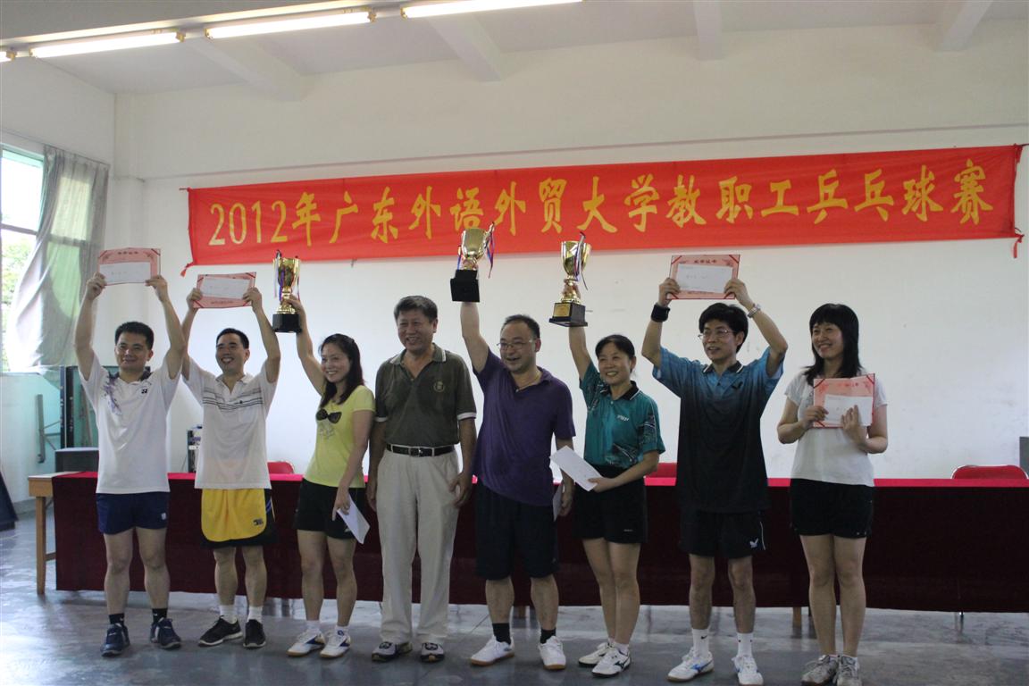 ,广外教职工乒乓球赛在北校体育楼三楼乒乓球室举行。经过激烈的角逐,继教(公开)学院获第一名,信息学院、机关分别获得二、三名。