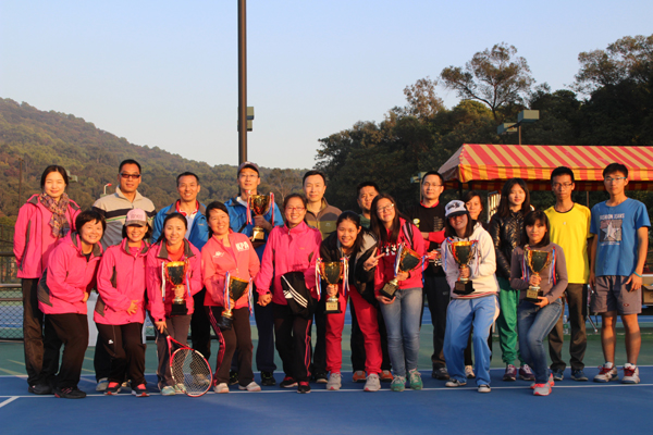 本次网球比赛共有15个部门工会、46名教职工参加比赛。比赛项目分为男单、女单、男双、女双。经过一天的激烈较量,教育学院勇夺团体第一,体育部、商英学院分别夺得第二和第三;男子单打前三名分别是焦峪平、丘乐威、赖文才;女子单打前三名分别是董秀清、梁俏梅、陈妙音;男子双打前三名分别是李旭武/林绍雄、李成团/喻志强、李崧/熊涛;女子双打前三名分别是张玲/黄超群、刘梦莲/齐湘燕、宁大利/黄艺。