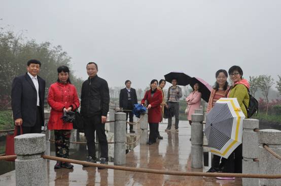 虽然天公不作美,下起了蒙蒙细雨,但是一点也没影响到大家出游的兴致。大家一下车就被极具岭南特色的湿地牌坊吸引住了,牌坊上雕刻有梅、兰、竹、菊图纹,以及"双龙戏珠"、"渔樵耕读"、"三阳启泰"、"硕果累累"和"岭南佳果"石雕,体现出岭南建筑精致、玲珑的特征,展现出海珠湿地农耕文化历史和岭南佳果主产地的特色。