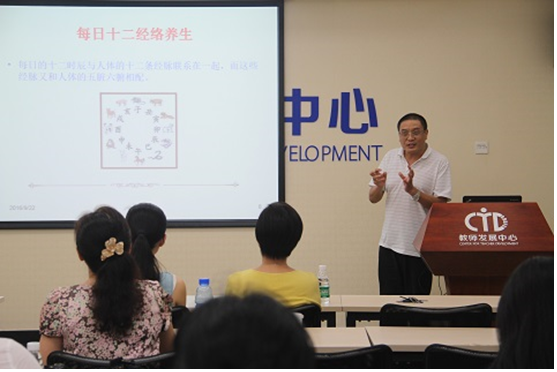 9月22日下午,由校工会与教师发展中心举办的中医养生健康知识讲座在北校教师发展中心成功举行。讲座邀请了校门诊部晏宏伟医生,主题为“人体生命的日节律——中医时钟”。