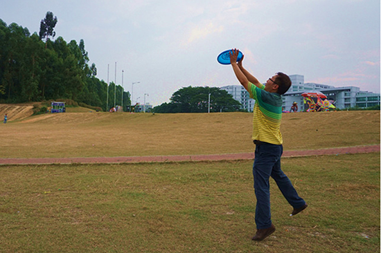 南校区中心湖场地平坦开阔,可以进行时髦的抛飞碟运动。