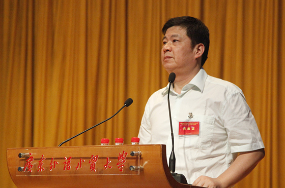 副校长许国彬代表学校就提交教代会讨论的《广东外语外贸大学绩效工资实施方案》向大会作了说明。许国彬重点讲解了绩效工资改革实施的背景、方案制定过程,绩效工资改革实施工作的总体思路和《实施方案》的基本内容和主要特点,并就有关问题进行说明。