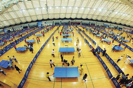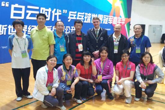 当天上午9:30由许国彬副校长带队的男女教工乒乓球队一行十五人首先参加了2013“白云时代”乒乓球世界冠军嘉年华活动,徐寅生、李富荣、江嘉良等大家耳熟能详的70余位中外历届乒乓球世界冠军与国际乒联主席沙拉拉亲临活动现场,2300多名业余和群众乒乓球运动员一起参加该次史无前例的乒乓球冠军“群英会”。