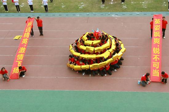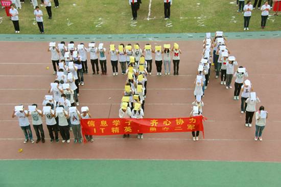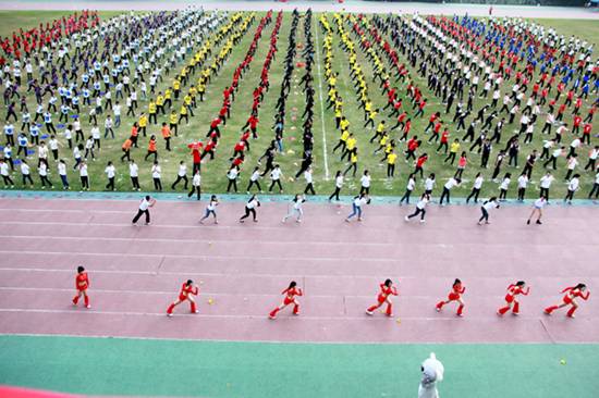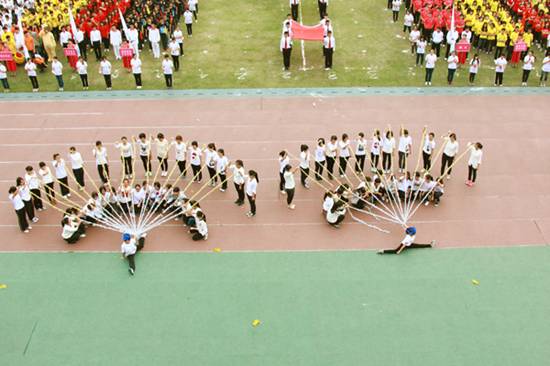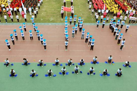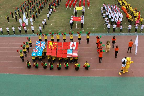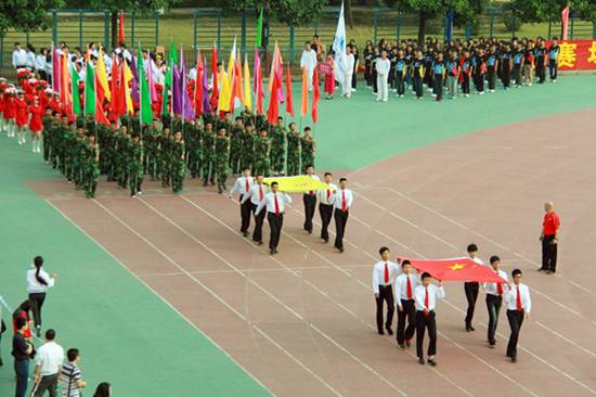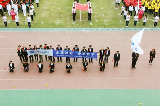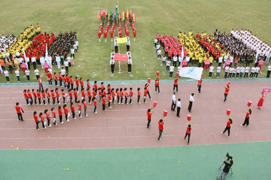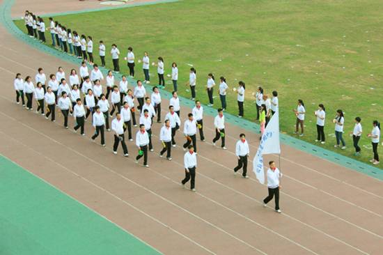 | 本网讯 11月15日上午,我校北校区体育场彩旗招展,一年一度的校运盛典拉开帷幕。本次开幕式,各学院方阵各出奇招,奉上精彩的视觉盛宴。下面请跟随记者的镜头,一同走入校运第一天,感受别样的校运精彩。  国旗、校旗入场拉开校运序幕  教工代表队英姿飒爽  经贸方阵挥动彩旗,气势宏大  管理学子迅速变换队形  东语之龙腾空而起  英文舞者舞动在七列队伍中央舞动  国际学院显国际化特色,吉祥物夺人眼球  法学院鸣鼓变换队形  商英“键盘”独具匠心  公开学院展示学院特色  思政学子舞动啦啦操  留学生喊出“我爱广外”  艺术人尽显“ART”风采  教育学院队形整齐划一  “财院威武”响彻赛场  “活力新传”夺人眼球  IT精英亮相赛场  高翻学子拼出“SITS”的英文字样  西语“红心”、“红裙舞”亮相赛场  MBA学院展现职场人干练风采  中文学院“孔雀开屏”别出心裁  教工表演广播体操  啦啦队热舞掀起阵阵欢呼  健美操——力与美的完美表演  千人齐跳“江南style”