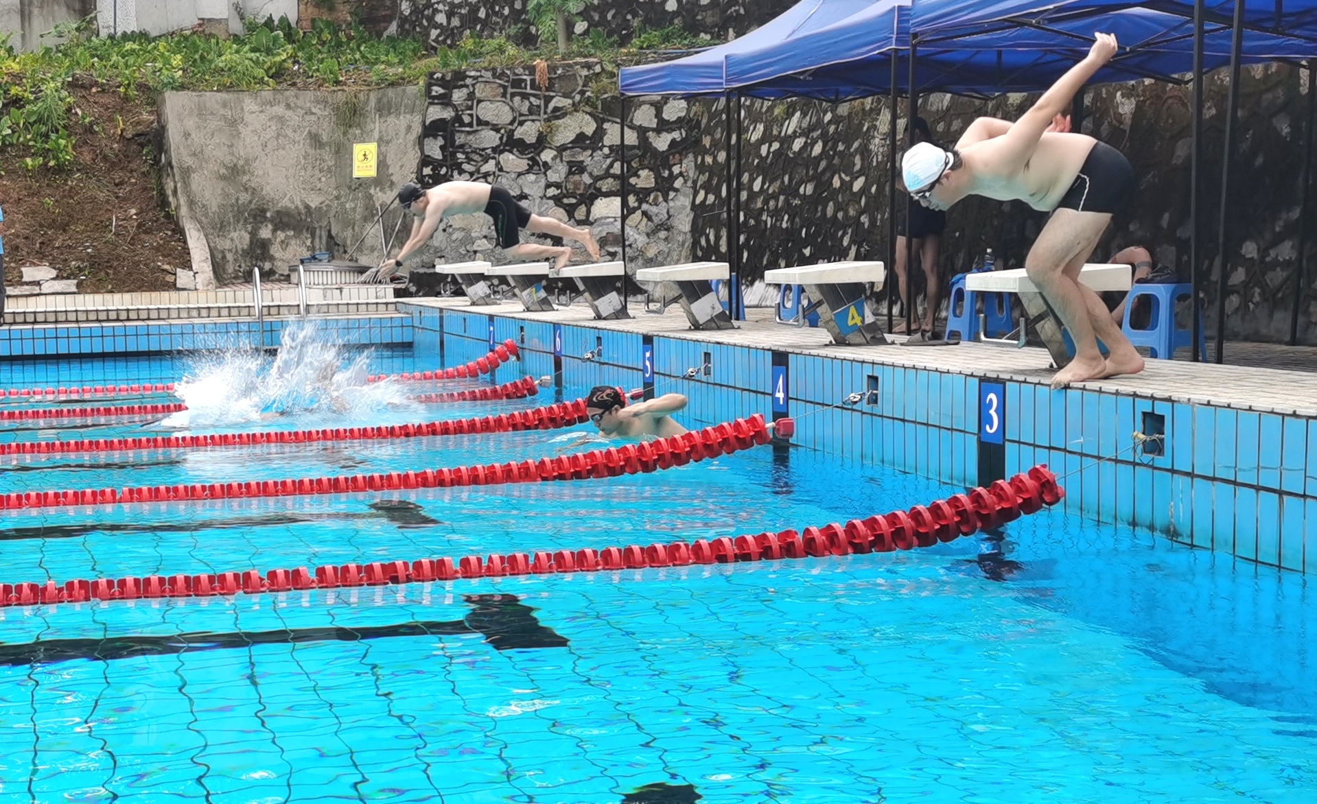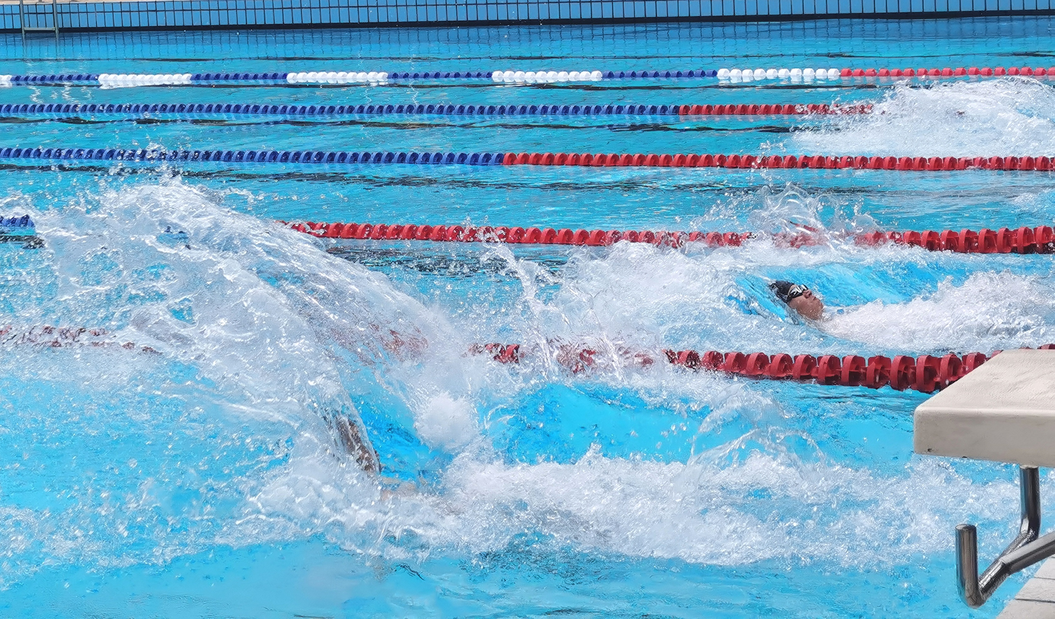 随着裁判一声令下,比赛正式开始,湛蓝的泳池瞬间荡起无数浪花。选手们劈波斩浪,飞速向前游去,掀起一簇簇白色浪花。现场呐喊声、欢呼声不断,高潮迭起。