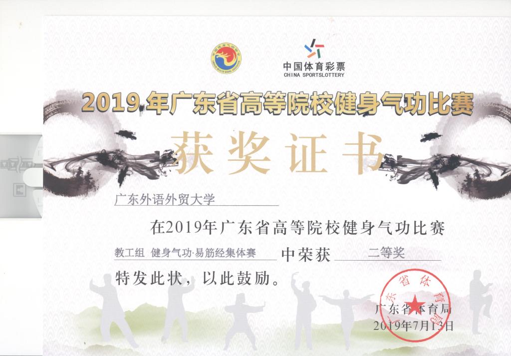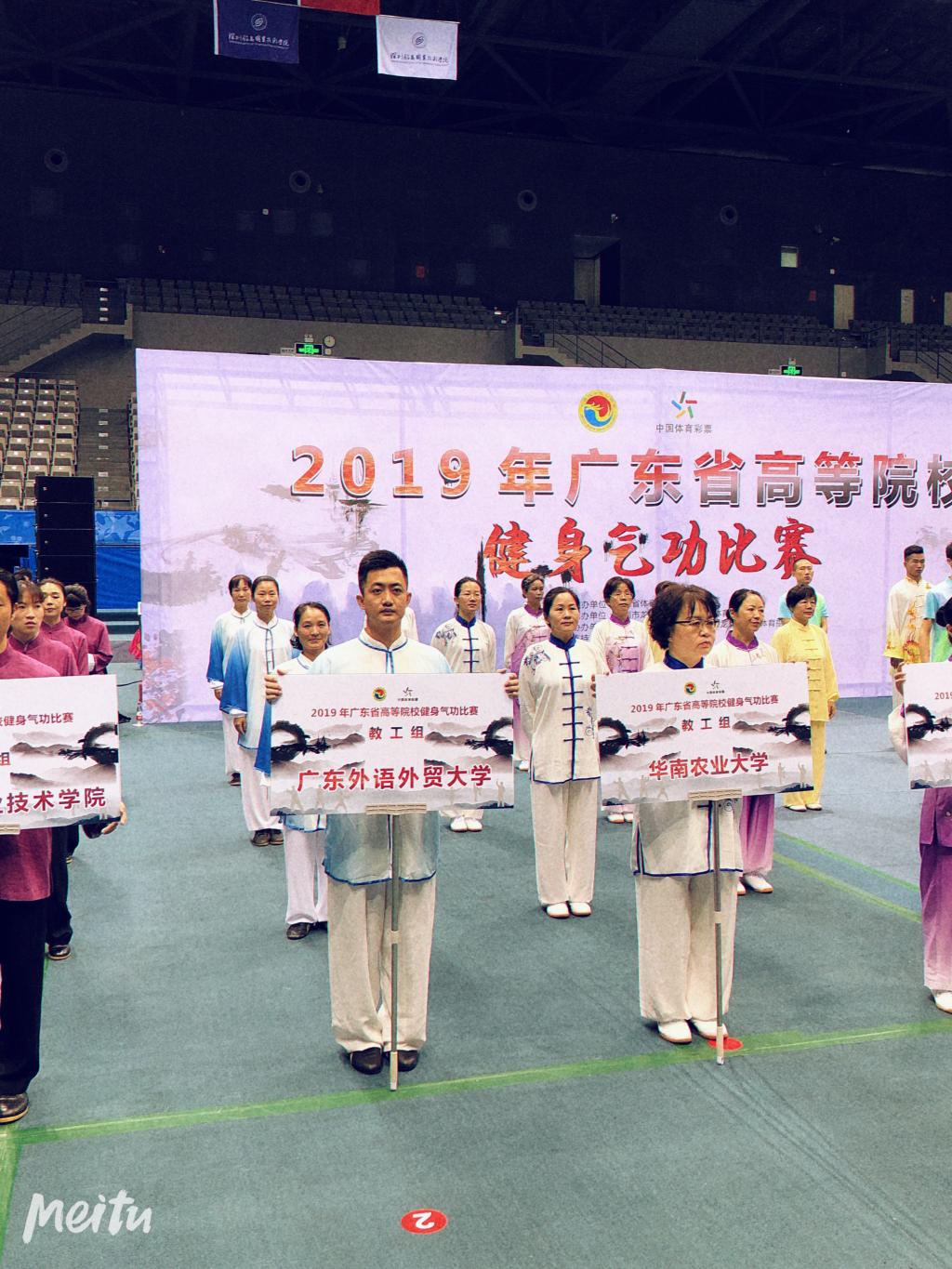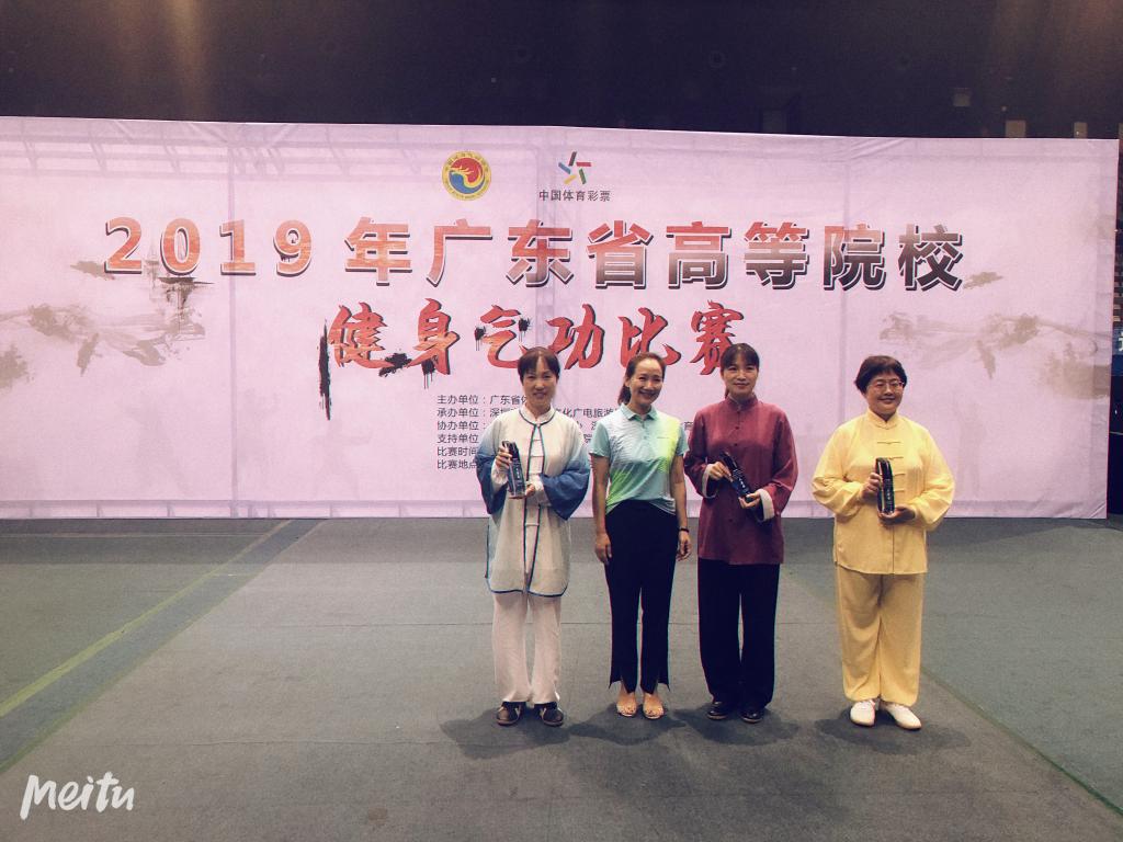 7月12日至14日,由广东省体育局主办,深圳市龙岗区文化广电旅游体育局承办的2019年广东省高等院校健身气功比赛在深圳市龙岗区举行。我校教工代表队积极参赛,并获得佳绩。