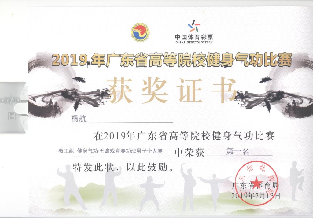 杨航获“教工组健身气功五禽戏竞赛功法男子个人赛第一名”