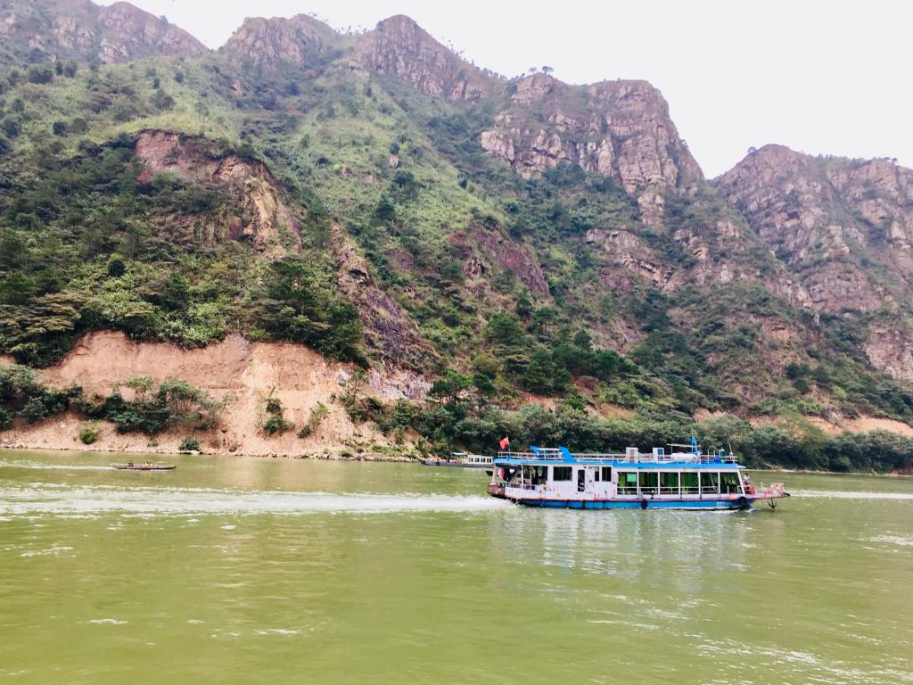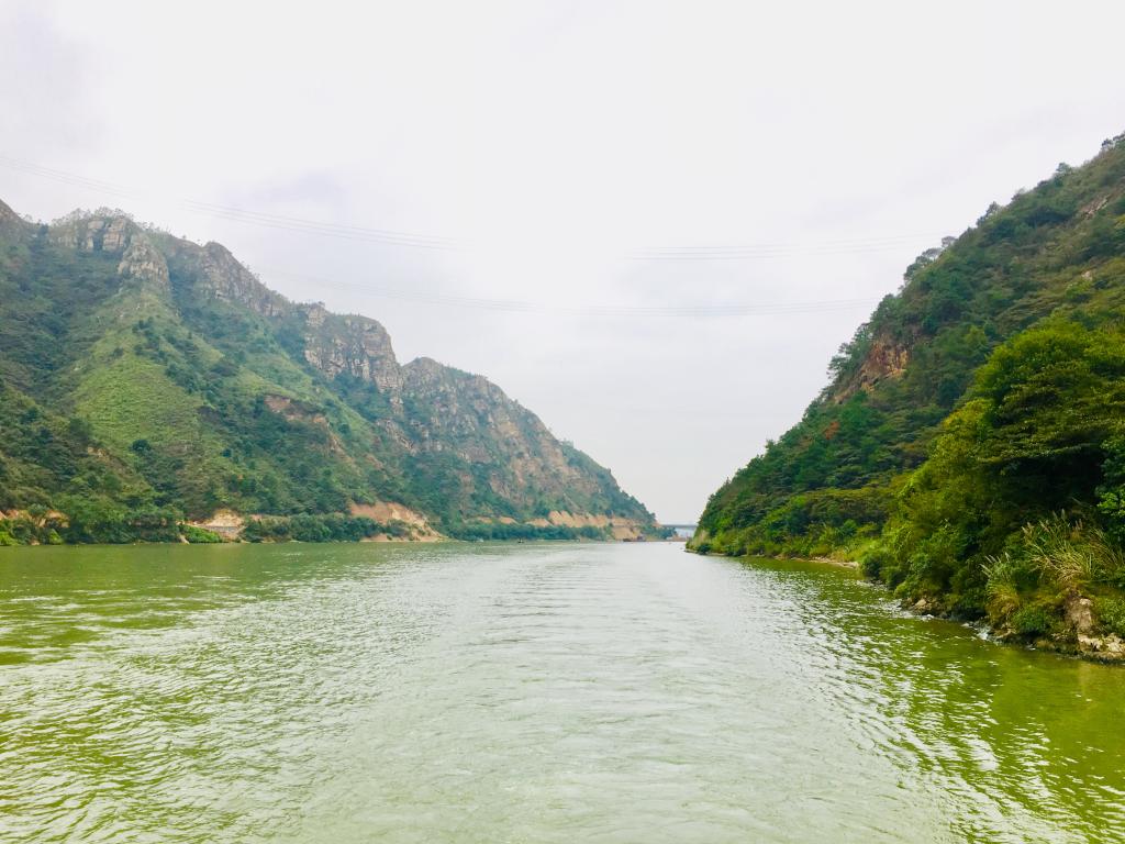 饱览了古龙峡的美丽风光后,大家转而乘坐游船,在小北江中做了一回江中游人。沿江行船,江水碧绿,青山苍翠,赠悠悠过客满眼翠绿惬意。置身于美景之中,大家你来我往,互道乐事,一时游船上充满了欢声笑语。