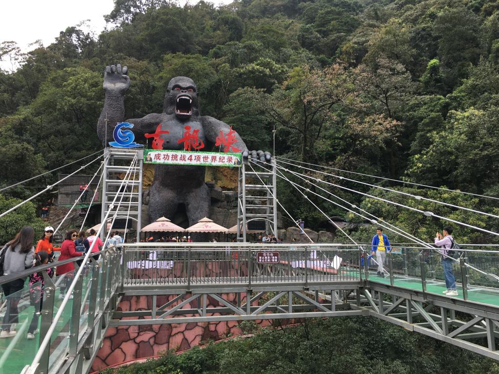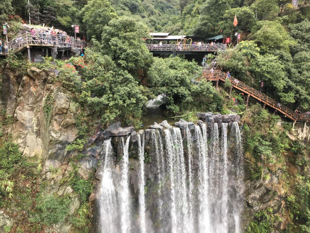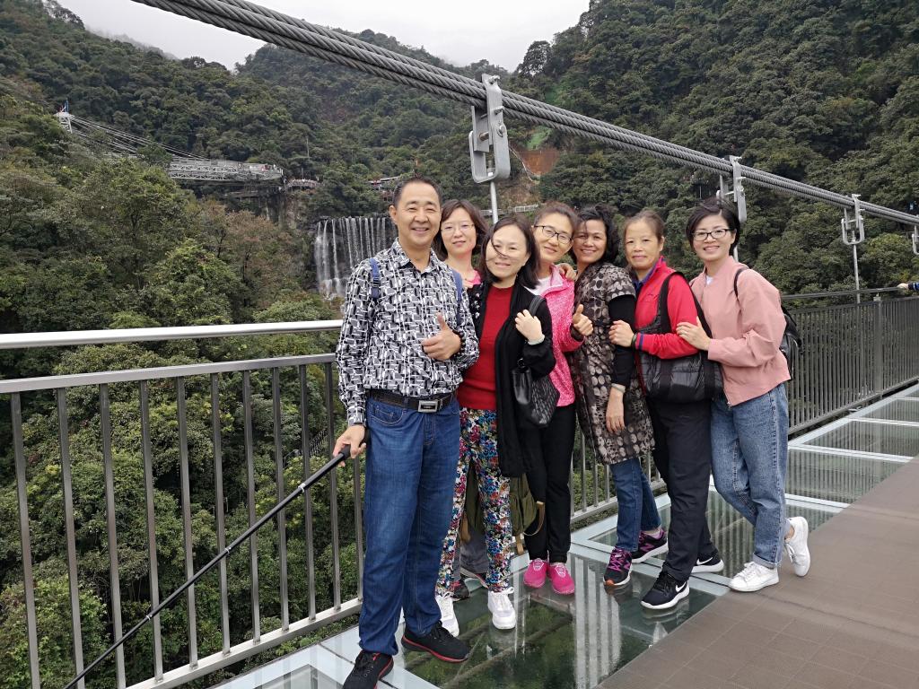 秋游第一站为惊险刺激的古龙峡玻璃栈道。勇敢的教职工们纷纷迈出大胆的一步,体验着在透明玻璃栈道上行走的惊险之旅,在古龙峡上做了一回英雄。刺激之余,大家饱览了古龙峡的峻山秀水。俯仰之间,原始壮观的悬崖绝壁、奇显幽深的万丈飞瀑尽收眼底,令人心醉。